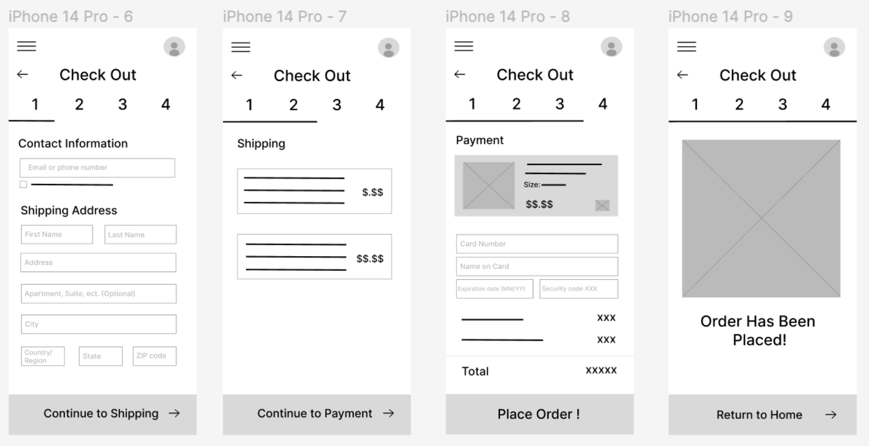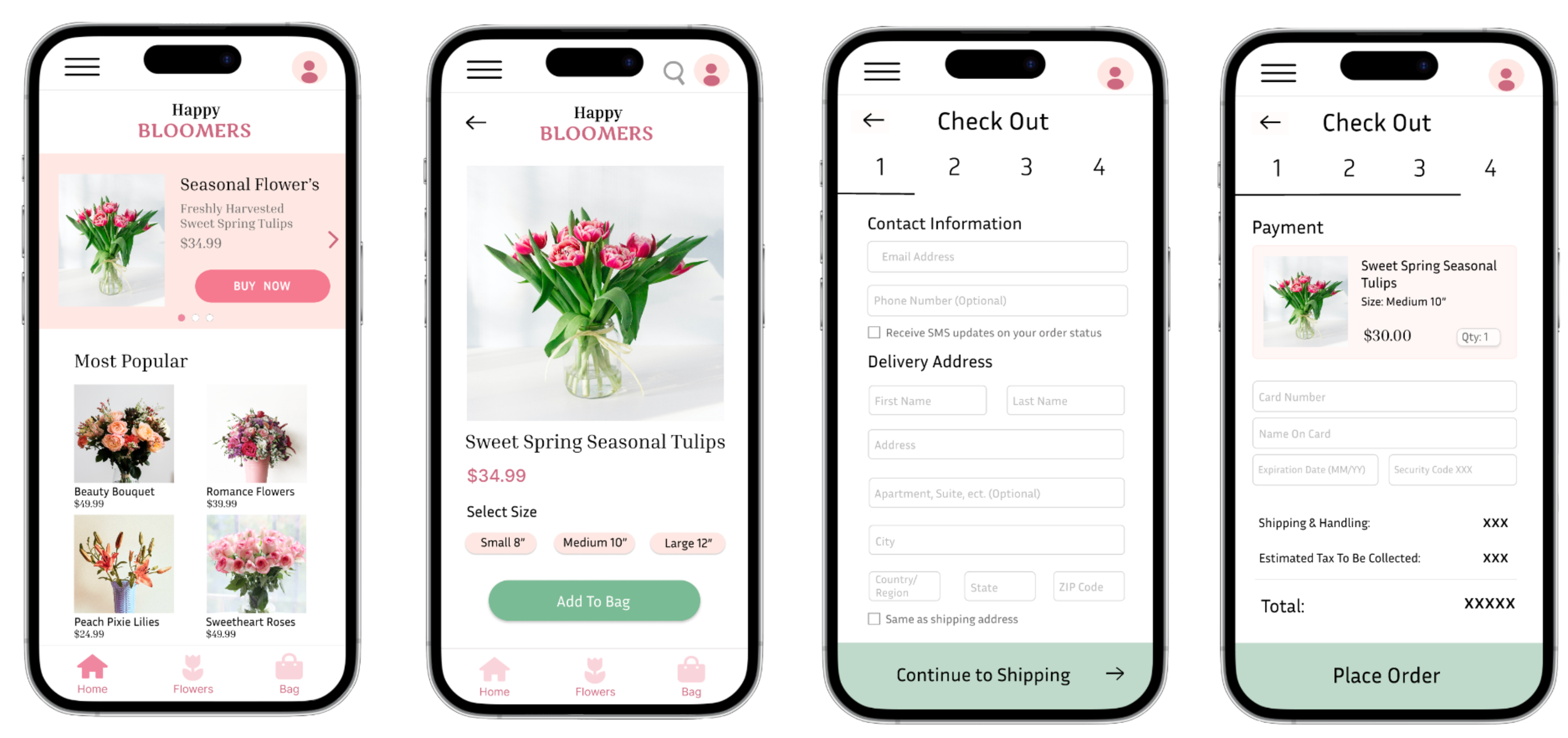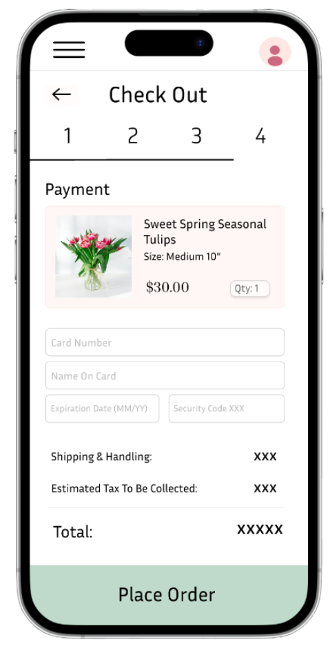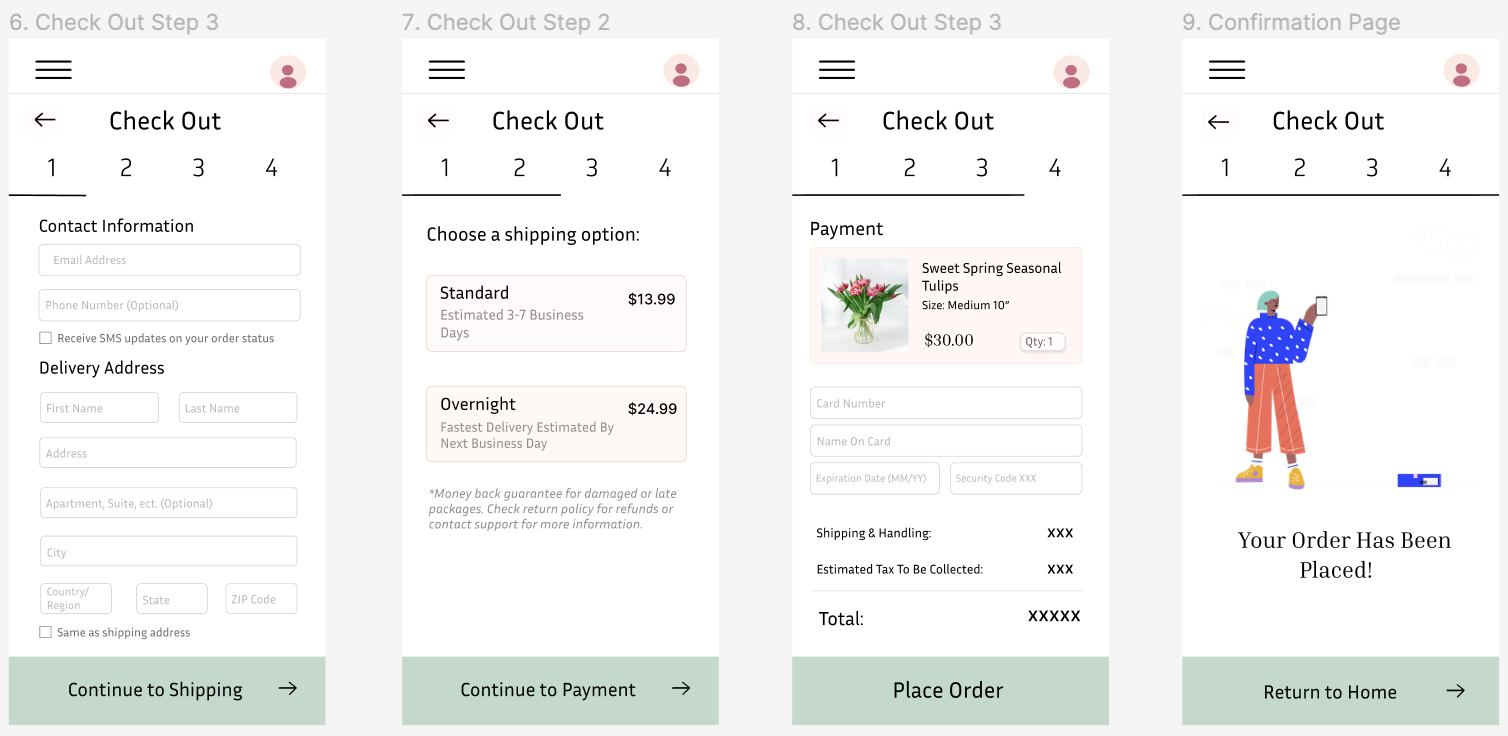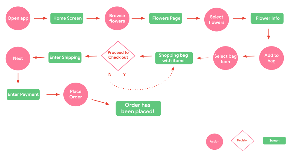 I created a simple pathway to guide users from browsing for flowers to the checkout process.
