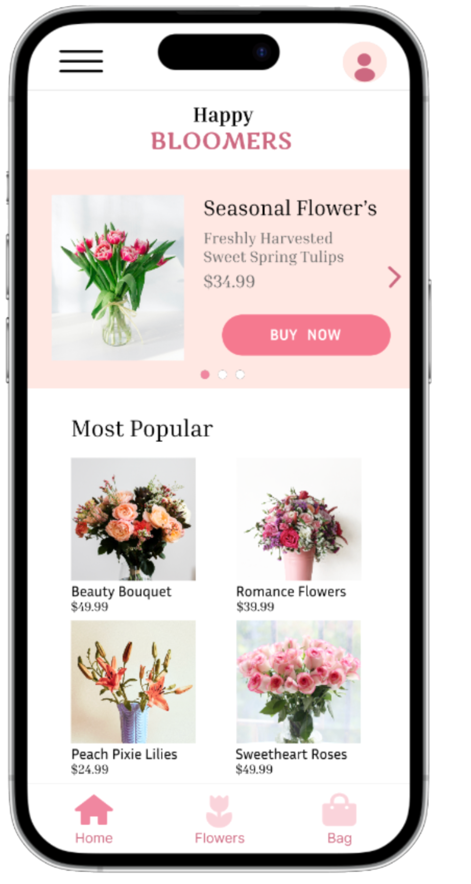 None of my competitors offered a mobile app, so I wanted to help my users reimagine their floral shopping experience. I focused on ways of exploring ways to create a minimal step and exciting shopping experience.