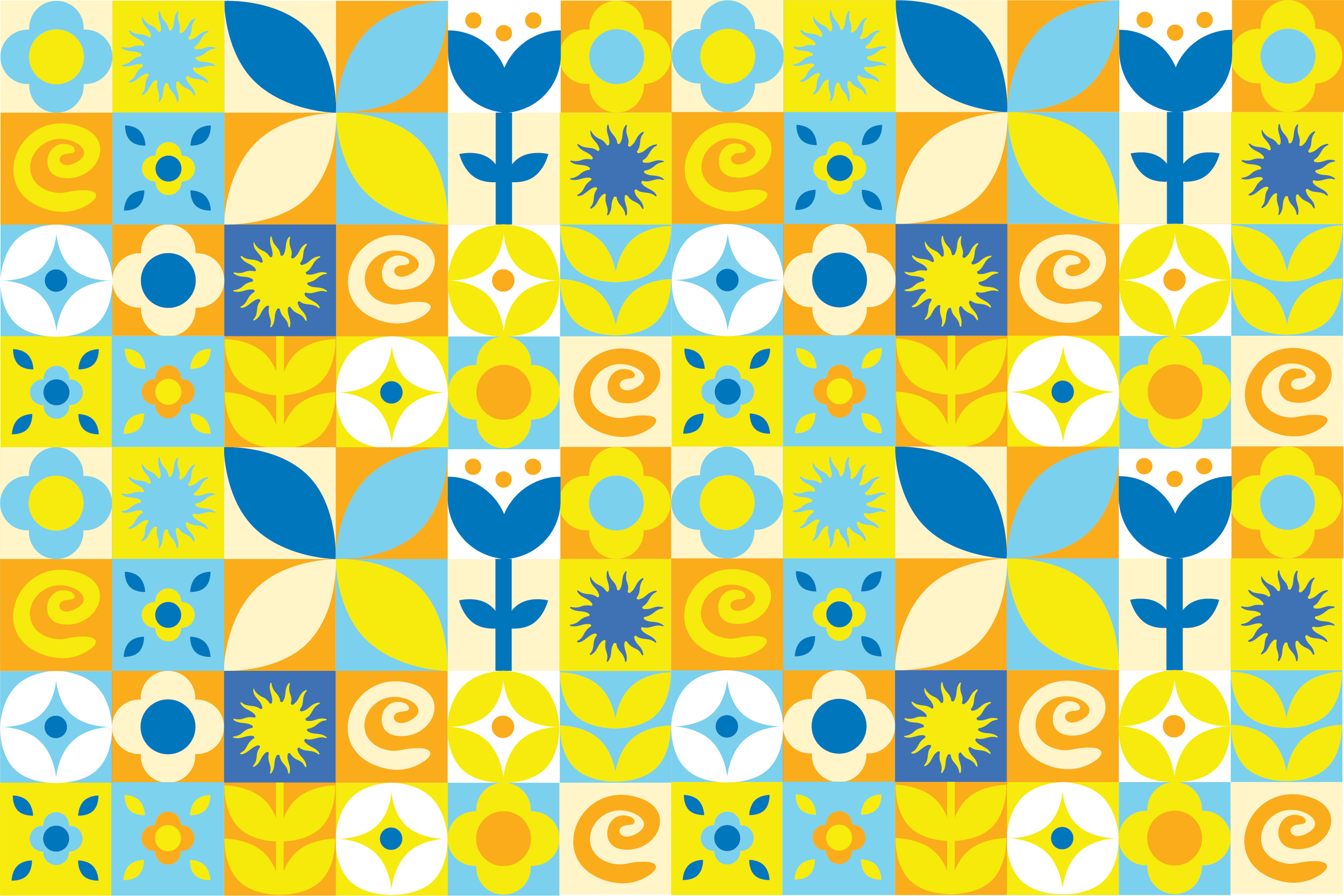 I was inspired by retro patterns when creating my own for Sun Doodle. I knew that I could incorporate many fun shapes and designs to could help make my brand more expressive. I encoorperated symbols that were in my secondary logo to make it cohesive.